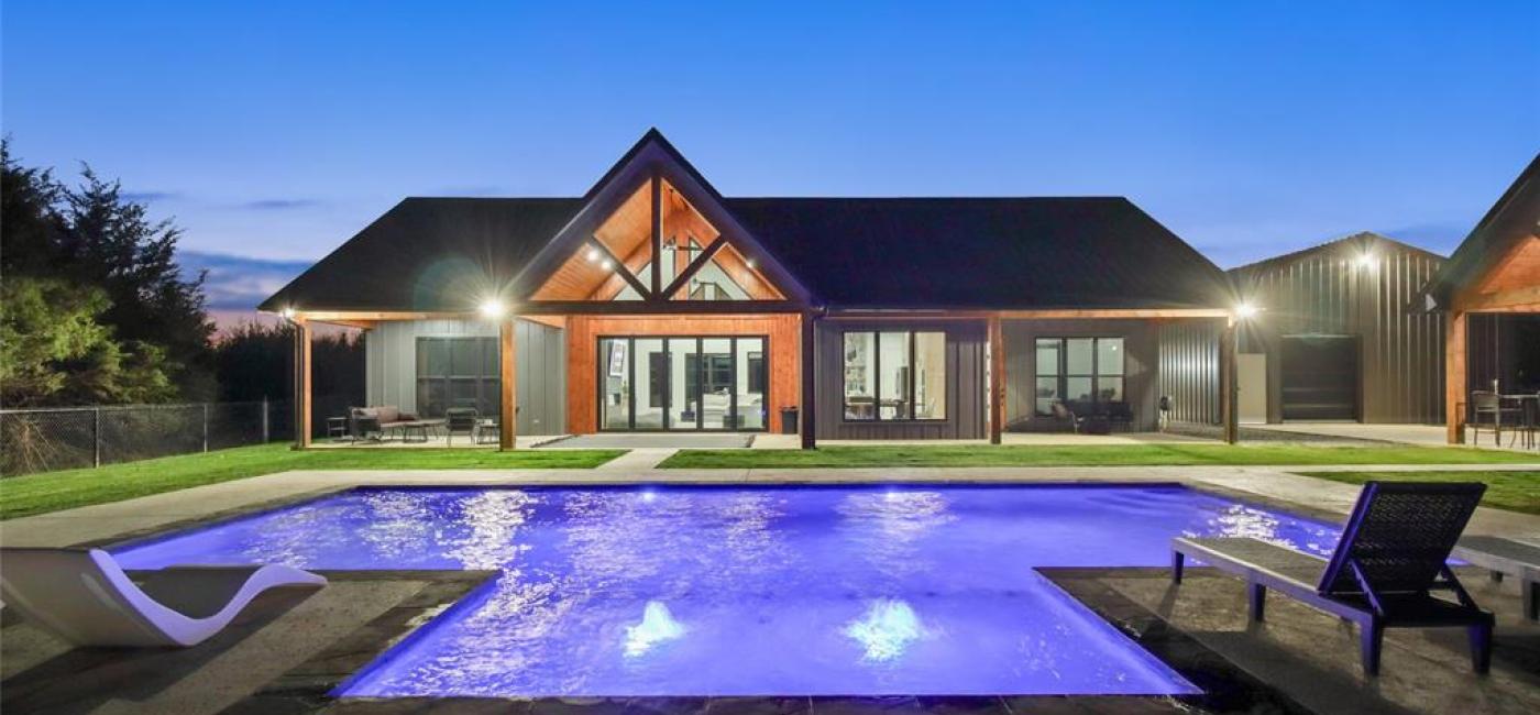 MOTIVATED SELLER! Discover superb craftsmanship with this 4 bedroom, 2.5 bath custom Barndominium on 4.97 acres with dazzling in-ground pool, cabana, workshop! A second residence at the front of the property is also available for purchase. Escape the hustle and bustle of city traffic while relaxing on this partly wooded spot that sits off a quiet County Road. Step inside this impressive vaulted entrance with 15-foot glass doors and find an abundance of light inside, with the many oversized picture windows. The dramatic living room comes with spectacular vaulted ceilings, an electric fireplace, and scenic views of the private backyard from a large covered back patio. Quartz countertops are included in the open kitchen that also has an island w-seating area, electric cooktop, built-in oven, premium cabinetry, and walk-in pantry. Panoramic views continue in the dining room full of custom windows. The lavish primary ensuite bedroom includes soaring vaulted ceilings, access to the backyard, double vanities, separate shower, soaking tub, and walk-in closet. Dip into the swanky in-ground pool with tanning ledge, Del Ozone system, and LED lights for added flair. Outdoor living is a breeze with a pool house, separate bathroom, outdoor kitchen grill, and lots of space for seating areas. A 30x30 workshop or garage with 220 wiring, front double doors, walk-thru door, and rollup door to backyard, connects to the main house by a walkway. AVAILABLE FOR PURCHASE: a completely-equipped separate 2nd residence--nicely designed 2024 manufactured home with over 1,000 sq.ft. for options as a rental, BnB, or guest space. You can find this phenomenal sanctuary only 15 minutes to the popular town of Sulphur Springs, 15 minutes from the world-renowned Lake Fork, and 78 minutes from downtown Dallas. Country living gets a fabulous upgrade with this upscale home built and owned by the original designer, and their plan became Barndominium Life's most popular plan. Ask about seller paid's.