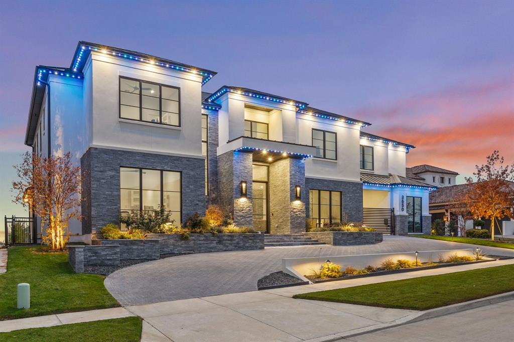 Achieve the pinnacle of luxury living at 3650 Balfour Court, a breathtaking modern estate located in the prestigious, gated community of The Hills of Kingswood in Frisco. Move-in ready and masterfully crafted, this 6-bedroom, 8-bathroom residence spans nearly 8,000 square feet and exemplifies contemporary sophistication, comfort, and design excellence. Step through grand 14-foot double doors into an expansive open-concept layout, where soaring ceilings and walls of windows flood the home with natural light. A sleek linear fireplace anchors the main living area, while a dramatic glass accordion door seamlessly connects the interior to the outdoor oasis. Custom contemporary chandeliers and recessed lighting set an enchanting tone from day to night. At the heart of the home is a show-stopping chef’s kitchen, featuring a massive 12-foot island. Top-tier Gaggenau appliances and integrated custom cabinetry for a sleek, modern aesthetic. The luxurious primary suite offers a tranquil retreat, complete with a spacious walk-in closet, dual vanities, a freestanding soaking tub, and an oversized rainfall shower—evoking a spa-like experience. Crafted with exceptional attention to detail, the home includes white oak flooring, designer finishes, and custom windows and doors throughout. Outside, enjoy resort-style living with a sparkling pool and spa, dramatic fire and water features, and ample space for entertaining or relaxing in complete privacy