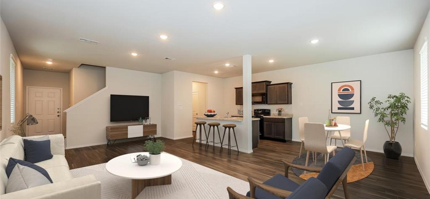 Enjoy the spacious living areas and bedrooms in the Camden floorplan! This two-story home features 3 bedrooms, 2.5 bathrooms with a large flex space upstairs. Enjoy oversized closets, wood-style flooring, and fully fenced backyard. All homes are SimplyMaintained for a $100 monthly fee that includes front and back yard lawn care and exterior pest control.