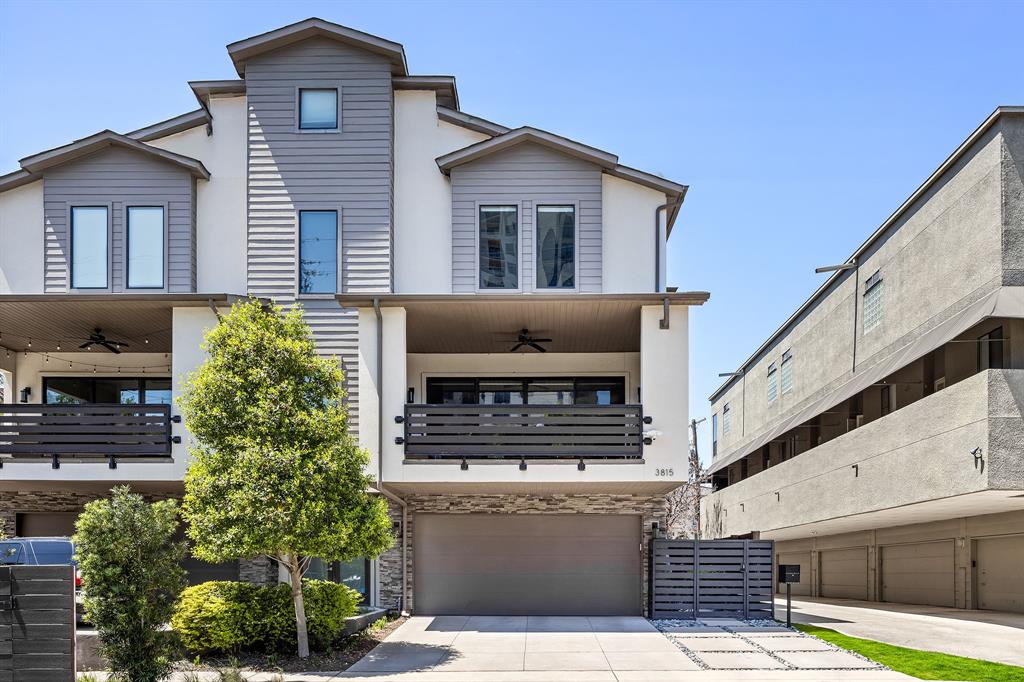 Gorgeous 3-story townhome in Oak Lawn adjacent to Highland Park! Secure gate and 1st floor foyer entry provide extra privacy. 2nd floor boasts spacious open plan with roomy living room, dining room, and chic gourmet kitchen. The living room is sunny and bright, accented by a wall of glass doors that open to a large covered patio with ample room for outdoor living & dining. Dining room features an elegant modern chandelier and a built-in nook perfect for a bar. Delight in the gourmet kitchen that offers Kitchenaid SS appliances, including a 5-burner gas cooktop and double ovens. Bosch fridge added in 2024. Sophisticated waterfall island boasts seating for 4, and granite countertops and built-ins offer plenty of space and organization. Peaceful primary suite has great city views and natural lighting, with space for a relaxing sitting area. Beautiful spa-like bath includes granite countertops with dual vanities, huge walk-in shower, and Hollywood soaking tub accented by sparkling chandelier. Upgraded California walk-in closet is ideal for organization, and connected washer-dryer provides extra convenience. The secondary bedroom would be great as a study or exercise room. Cozy reading nook invites you to unwind. Backyard oasis is covered in turf and features beautiful landscaping with plenty of options to create your dream outdoor setup. Extra features include new HVAC, water-softening system, kitchen touchless faucet and reverse osmosis system, EcoBee digital thermostat, and garage with epoxy flooring and indoor entrance. The downstairs studio apartment can be used as an income producer or can be part of the house, teen room or office. It has a separate entrance, large living room and bedroom area with walk-in closet. Kitchen has full size fridge, 2 stove burners, apartment size dishwasher and an all-in-one washer and dryer. This home is elevator ready. Close to high-end retail and restaurants, with easy access to the tollway and 75.