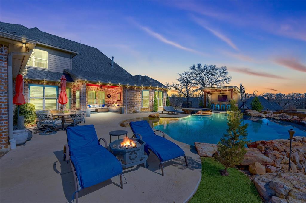 Let this be your number one Pick, Exquisite residence in Saddle Creek, prominently positioned on an expansive corner lot with unparalleled and distinguished curb appeal. An Impressive entryway with double doors welcomes you to a formal dining area and a private office showcasing built-in shelving. The luminous living space boasts floor-to-ceiling brick fireplace, vaulted ceilings, and abundant natural light, seamlessly flowing into a chef's kitchen featuring pristine white cabinetry, quartz countertops, and top-of-the-line appliances. The opulent primary suite provides a serene retreat with a spa-like ensuite offering a walk-in shower and soaking tub. All secondary bedrooms are generously proportioned for utmost comfort. The upstairs game room offers a versatile space for entertainment. Step outside to discover your own personal Oasis, complete with Sparkling Pool, Spa, full outdoor kitchen, and inviting area surrounded by lush landscaping, ideal for both Relaxation and Hosting Gatherings in style. 4 bedrooms, 4 full baths, 2 dining, home office, and Game room-Media, and 3-car garage, come see ALL it has to offer you and your family and friends. It's a great time for a pool and this one's ready for you!