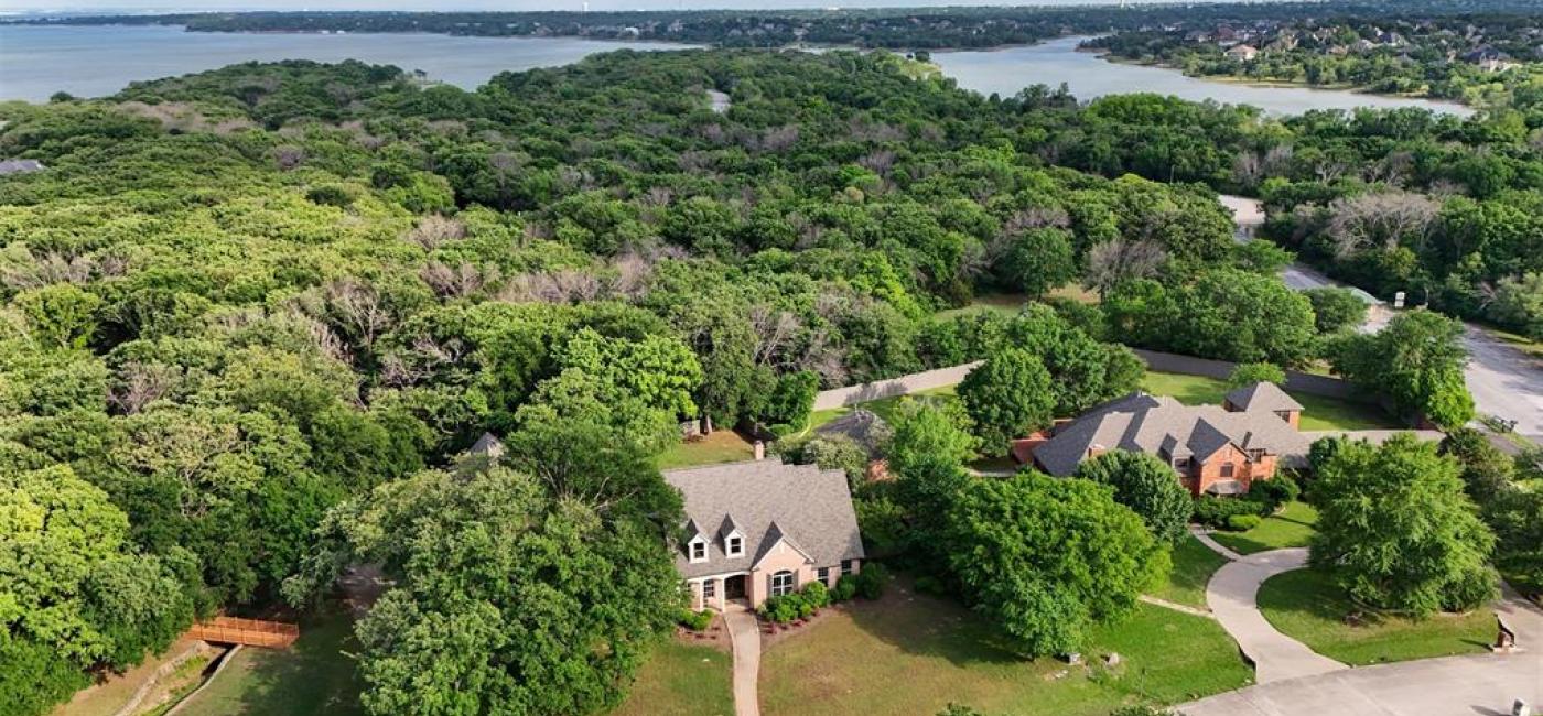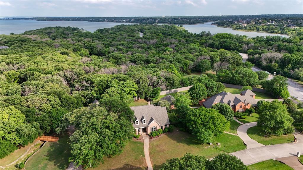 Amazing traditional home backing up to gorgeous, lakeside state park. Situated on park-like, oversized, 1.46 acre lot, including picturesque bridge, and entertainers dream backyard that overlooks dense peaceful, woodlands. Backing to state park and Lake Lewisville. Lovely views from chef's kitchen, luxurious owners' suite, and all living areas to mesmerizing, treed sanctuary. Downstairs primary with massive ensuite and separate walk ins is a dream. Two massive bedrooms upstairs as well as enormous third room that can be used as a bedroom, game room, media room, craft room, executive office, or flex space. Incredibly unique and hard to find detached guest quarters can be used as a pool house, or oversized home office, music studio, art studio, guest quarters or hobbyists dream space over detached three car garage. Amazing privacy in extensive back yard with pool, spa, and room for future sport, bocce ball or pickle ball court. Less than five minutes drive to nearly unlimited shopping, dining, athletic & entertainment options.
