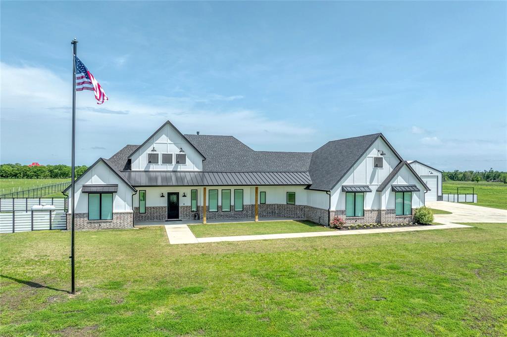 Nestled on 6.56 picturesque acres in the heart of Cooke County, this stunning custom-built estate offers a perfect blend of luxury and tranquility. Built in 2020, the 3,346 sq. ft. home features 3 spacious bedrooms and an office area or bedroom with built in cabinets, 2 elegant bathrooms with a half bath, and expansive living areas designed for comfort and style. The open-concept layout showcases soaring vaulted ceilings, rich French hardwood floors, and large windows that fill the home with natural light and showcase breathtaking country views.The gourmet kitchen is a chef’s dream, complete with premium appliances, quartz countertops, custom cabinetry, two islands ideal for entertaining, double stainless steel wall ovens, gas six burner cooktop with stainless steel built in fridge and freezer. The primary suite is a private retreat featuring a spa-inspired bath with soaking tub, double shower heads, dual vanities, separate vanity area and a walk-in closet with built ins. Large walk in pantry with shelfing. The laundry room with farmhouse sink has room for storag. House is wired for electrical surge protection and custom 4 inch plantation shutters throughout.Step outside to enjoy the sprawling acreage with fiberglass salt water pool and fire pit a large garden area. Plenty of room for livestock, gardening, or future additions the home currenlty has an ag exempt for bees. The home has 45' by 36' metal outbuilding with RV hookups plus 100 amp circuit and pre-plumbed for bathroom and RV dump. This property offers the serenity of rural living with easy access to nearby amenities and top-rated schools. Whether you're looking for a peaceful homestead or an upscale retreat, this home is a rare find. Conviently located to I-35 and Lake Ray Robers.