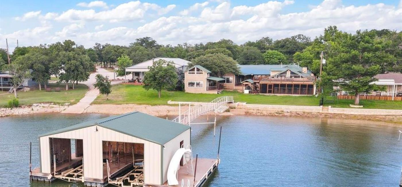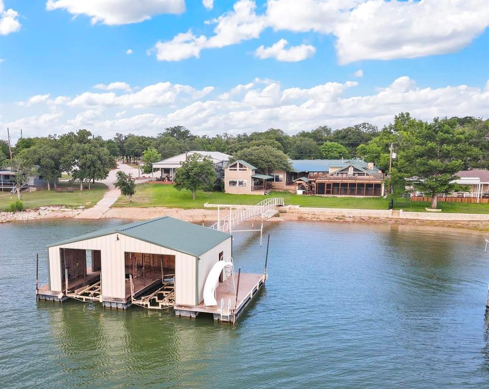 Seller ready to deal! Spacious Lakefront Retreat on Possum Kingdom Lake with a Boathouse Dock! This rare gem offers an incredible amount of space & unbeatable lakefront living. Comfortably sleeping 25, the open-concept main home & detached guest house provide plenty of room for everyone. Enjoy an expansive indoor-outdoor kitchen entertainment area, a large game room, & the enclosed boathouse dock with lifts for 2 boats & parking for 2 seadoos. Boathouses like this can no longer be built on PK, making this ability to store your boats fully protected a RARE find! The rooftop deck offers breathtaking views, & the gentle, beach-like shoreline is perfect for swimming. Offered turnkey fully furnished, this property includes a 2-car garage, private gated entrance, & a NEW SEPTIC SYSTEM , and many other upgrades! This is an INCOME PRODUCING short-term rental with an established VRBO profile, offering a seamless investment opportunity. Located near Breakers Marina & within walking distance to Fox Hollow Restaurant.