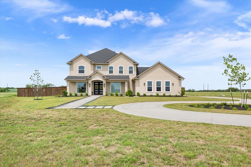 Looking for S P A C E? From gourmet cooking, to movie nights in your own media room, to refreshing dips in the pool under the stars.This home offers it all! Imagine the possibilities of 5 spacious bedrooms, 4 full baths, ABUNDANT storage spaces, dedicated office, formal dining, media room, plus TWO flex spaces. Chef’s kitchen is equipped with a 6 burner Viking cooktop, double convection ovens, large island, under cabinet lighting, sleek Skinny Shaker cabinetry, 5x6 walk-in pantry, and butler’s pantry used as a cozy coffee bar. Expansive laundry room has storage and space for secondary freezers. Wake up to a gorgeous overlook of your pool and property in the luxurious owner’s suite that spans the entire back side of the second floor with soaking tub, separate shower, double vanities, and generous walk in closet. The secondary primary bedroom downstairs wing includes full bathroom and large flex room, which can be used as a closet and future bathroom expansion if you wish or 6th bedroom. Ideal MIL suite, too. Interior concrete-encased storm shelter built for peace of mind that doubles as a generous storage space. Oversized 3-car garage with extra storage or gardening area. Water systems include whole-home water softener, reverse-osmosis filtration, and dedicated water storage, pump, and UV light for steady pressure, in ground sprinkler systems for front and back yards, flower beds, and irrigation lines for your future raised gardens. Enjoy 7+ acres providing privacy and outdoor opportunity: expansive patio space, heated pool and spa with LED lighting—ideal for star-lit relaxation. This is a rare chance to own an Alford company custom-built estate that perfectly balances privacy, comfort, and functionality—all within a prime school district. CRAWFORD ISD AND NO HOA.