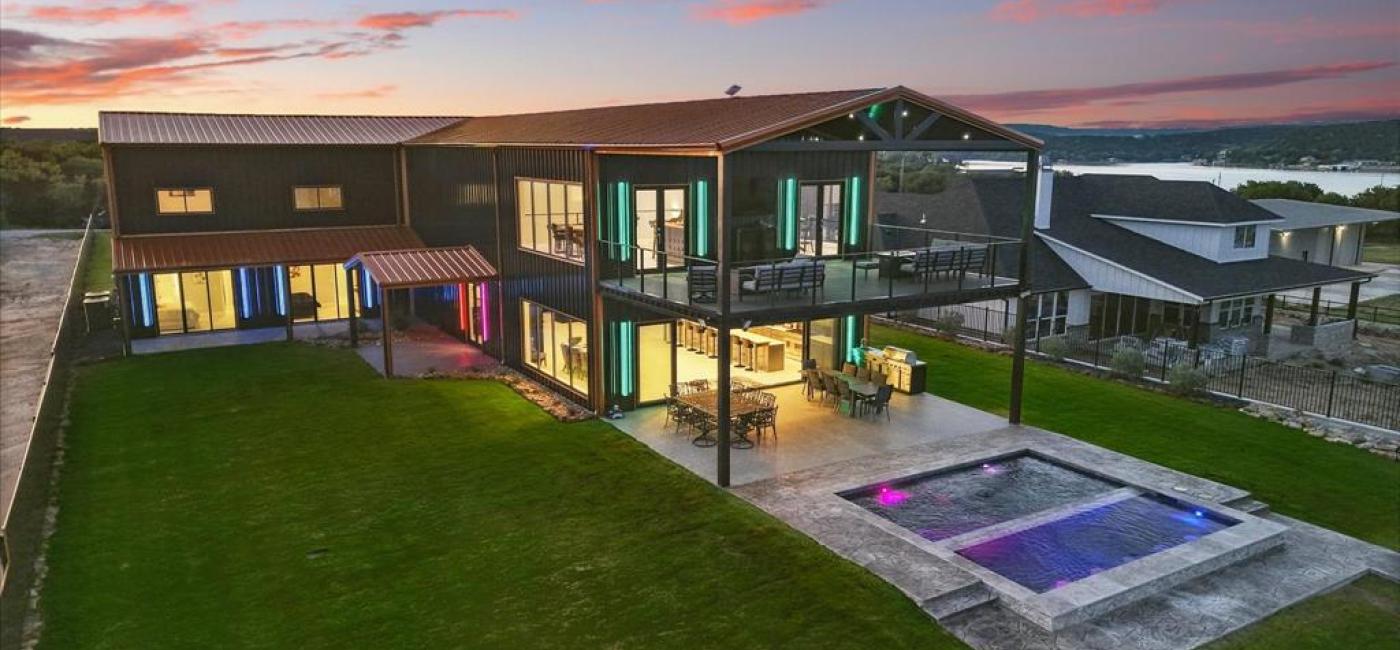 NEXT GEN-LAKE LODGE New Construction, Max Size NEW Dock, Resort-style Amenities, Sleeps 30+, STR Ready! One-of-a-kind, lake estate, offering breathtaking panoramic lake views. A rare level lakefront lot with massive natural boulder 50 ft deep shoreline, easy access to a big beautiful deep-water dock. This 6830 sq ft luxury lakefront home offers 10 bedrooms and 7.5 bathrooms, including 4 private master king suites, 5 additional king bedrooms, and an oversized 8-bed bunk room. Built for entertaining, income potential, or a personal retreat, the open-concept layout features oversized living, kitchen, and dining areas with soaring ceilings and seating for 60 plus. Still customizable to match your style, this home blends bold design with smart features. The upper-level 1000 sq ft air-conditioned game room includes pool tables and a full saloon-style bar, opening outside to an open-air observation deck with smart ambient lighting, sound system, gas firepits, and incredible panoramic open lake views. Outdoor living offers 1200+ sq ft of covered seating areas, a custom lakeside pool with in-water bar seating, and a 20-person spa with smart controls. The lush, level yard is perfect for yard games like cornhole, bocce ball, or frisbee, and leads to the easy access nature walk through boulders to the maximum sized 2000 sq ft deep water double-decker dock featuring 2 large boat lifts, PWC ports, and generous space for fishing, swimming, and relaxing. Additional features include 4000 sq ft of tile flooring, a large laundry room with 3 stackable washer & dryer sets, smart lighting, and sleeping for 26–30 guests. Fully furnished or finish to your taste. Easily hosts events of 50–75 people. Located near The Breakers Marina and top lakefront dining, all within side-by-side or paddleboat reach. A rare opportunity for young professionals seeking a modern lakefront lifestyle with flexibility and rental potential. Video NEXTGENLAKELODGE dot COM