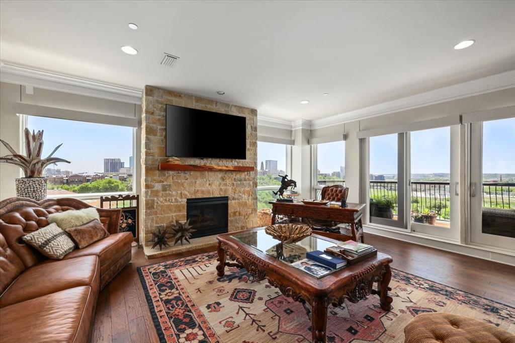 With the holiday season upon us, the magic of the lights and festivities can be enjoyed right from the comfort of home. Experience luxury living at its finest in this RARE 4-bedroom, 4.5-bath residence at Villa de Leon, Fort Worth’s most exclusive riverfront communities. This exceptional home offers breathtaking views of downtown Fort Worth and the Trinity River from a private balcony—an ideal setting for relaxing with a glass of wine while watching Fourth of July fireworks or the twinkling Christmas lights that illuminate the city. Wake up to the peaceful sounds of birds along the river, the gentle flow of the water, and the distant chime of church bells. This stunning condo delivers an unparalleled blend of tranquility, sophistication, and convenience, all just minutes from Fort Worth’s finest dining, shopping, and cultural attractions. A truly must-see residence in one of Fort Worth’s premier luxury communities.