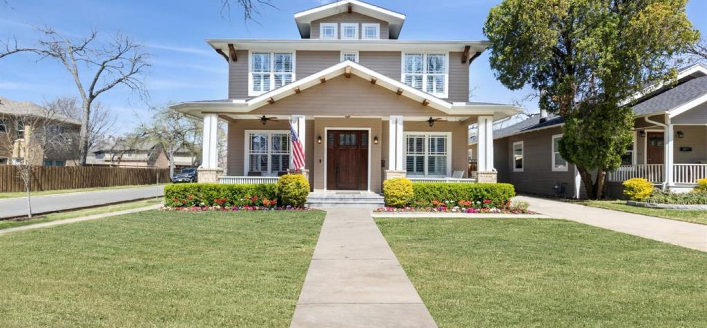 Discover the charm and elegance of this 4-bedroom, 3-bathroom Craftsman-style home nestled on a corner lot in the highly sought after Dallas' Conservation District of Vickery Place, renowned for its historic charm and tree-lined streets, and perfectly located a short walking distance to all that Henderson and Greenville Avenues have to offer. This residence beautifully melds classic style with modern amenities, offering a perfect blend for comfortable living. Step inside to find high-end hardwood floors throughout with a welcoming guest room on the main floor, currently serving as a home office featuring coffered ceilings and a full bath. The inviting family room boasts stunning wood beam ceilings, a cozy gas fireplace, and custom built-ins, flowing seamlessly to a well-appointed kitchen, equipped with stainless steel appliances and granite and marble countertops. A butler's pantry complete with a wine cooler adjoins the kitchen and dining room for ease of entertaining. You can relish tranquil moments on the covered back porch overlooking a turfed backyard, perfect for hosting outdoors. An electric gate provides privacy and easy access to the oversized air conditioned two-car garage. Venture upstairs to discover two additional bedrooms connected by a Jack and Jill bathroom, providing privacy and convenience. A dedicated upstairs laundry room with updated washer and dryer on pedestals and laundry sink for convenience. The luxurious primary suite is a true sanctuary, highlighted by a tray ceiling and an enclosed sunroom, perfect for morning workouts. A unique double-sided fireplace allows you to indulge in the spa-like primary bath, featuring a soothing garden tub, dual sinks, and a spacious walk-in shower, creating a haven of relaxation. This property not only offers an updated roof, HVAC and sprinkler systems, but an inviting front porch with a classic porch swing, perfect for relaxing and enjoying a meticulously landscaped front yard and quiet tree-lined street.