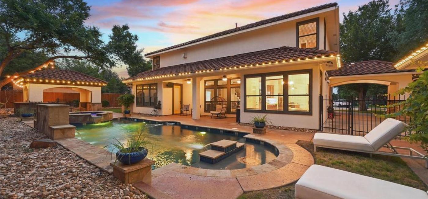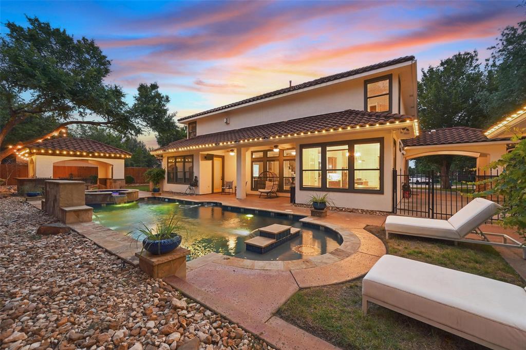 Do you want to live in luxury and style? Then come home to 5314 Meritage Lane. This stunning perfectly laid out property evokes elegance with comfortable living. Nestled in the center of a quiet cul-de-sac it offers a retreat at the end of your day and a resort style backyard for endless entertaining. Upon entry is the private office with a door across from the dining room. You'll notice light neutral paint throughout that perfectly compliments the wood floors. You don't have to be a Sommelier to appreciate a wine room and dry bar w upgraded lighting. Yes, please! Calling all foodies as this gourmet kitchen offers top of the line appliances including a Wolf gas cooktop, convection oven, new dishwasher, granite counters, extended backsplash, pot rack and island. Need a sanctuary to unwind? Your first level primary suit is calling with ample space and a spa-like remodeled bathroom from the floors up! The shower includes multiple heads with a decorative tub to keep you warm while you relax. Highlighting the remodeled Closet Envy large walk in closet, so you don't have to stop buying shoes! In addition is another nice sized walk in closet with dresser. Upstairs you'll discover a huge living or game or play room with access to a covered balcony, 2 bedrooms on each side and two full baths complete the exceptional layout. Movie and sports fans, lets go! Enjoy your shows comfortably and cheer on your favorite teams in your fabulous media room with surround sound and decorative lighting. When the shows over escape to your salt water heated pool and enjoy BBQ's in your outdoor kitchen under your cabana. End your evening around a cozy firepit and let the day melt away. Take a drive by in the evening to admire the upgraded decorative lighting that puts the shine on this one of a kind property. Notable items include surround sound throughout the property, new pool pump, fenced AC units, remodeled baths and more. The seller spared no cost in upgrades to an already stunning home!