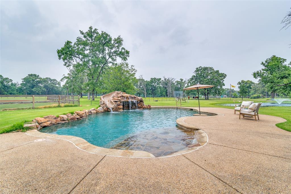 A Countryside Dream Estate, Twenty Acres of Pure Texas Bliss! Welcome to your private retreat nestled in serene countryside, where twenty AG exempt acres blend natural beauty with high end living. Rolling pastures, mature oaks, and three tranquil ponds create a lifestyle of peace, play, and productivity. A scenic gravel and asphalt drive leads past fenced paddocks to a fully renovated home showcasing deep farmhouse sinks, a clawfoot tub, custom slate showers, and premium stainless steel appliances. Step outside to your Field of Dreams, a private baseball field and basketball court are perfect for family fun or evening practice. A climate controlled multipurpose building offers two bedrooms, a full kitchen and bath, and generous living space, ideal for guests or creative use. Two RV hookups provide added flexibility. Enjoy a shooting bay with berm, stocked fishing ponds, a heated pool, and a raised stargazing deck for crystal clear Texas skies. Gardeners will love the irrigated raised beds, fruit trees, and charming chicken coop fresh eggs just steps away. With power and water in place, it's ready for a greenhouse. An open air workshop invites projects or easily converts to an outdoor kitchen and covered dining area. Of course, three livestock stalls make Oak Creek great for cattle, horses, or other animals, too. An electric front gate, private well, installed security system and Twenty KW Generator provide a secure homestead. Unwind beneath a peaceful pagoda overlooking the neighboring private lake, perfect for meditation or evening wine. Whether you dream of a secluded homestead, a weekend getaway, or an entertainer’s paradise, this one of a kind estate has it all. Your Texas countryside escape awaits, schedule your private tour today!