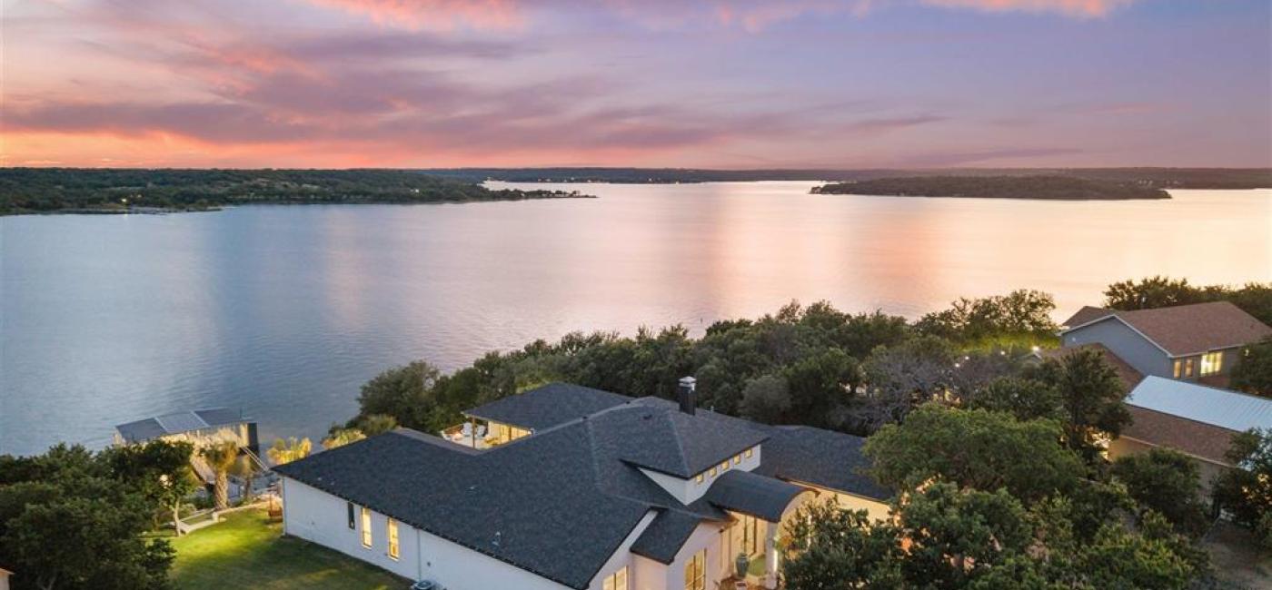 THIS IMMACULATE LUXURY LIVING CUSTOM BUILT COASTAL MODERN Lakefront home is ready for you to enjoy all the summer activities on a Beautiful Texas Hill Country Lake. This property is located in the central Texas area of the state on LAKE BROWNWOOD. The lake is currently full at Spillway level and the property has approximately 27 feet of water depth. This modern, architecturally designed custom-built home is only 3 years old. As soon as you enter this home the view of the lake is to be seen overlooking the infinity edge swimming pool. This home features 4,445 square feet of heated and cooled living area with 5 bedrooms, 5 bathrooms, walk-in closets, split bedroom arrangement. The massive living areas with high ceilings features a gas lit wood burning fireplace, 2 dining areas, breakfast area, large island with seating, a stone countertop, with a dishwasher, disposal, ice maker, sink, and lots of storage. The kitchen boasts custom cabinets floor to ceiling, a large gas 5 burner cookstove, built-in oven and microwave, stainless double refrigerator and freezer, indirect lighting, and a wine cooler. Modern tile flooring is installed throughout the home with carpet in the bedrooms. A bedroom on each side of the house has a view of the lake and the infinity edge swimming pool. The covered patio features a gas burning fire pit, 2 decorative gas bowl pits, a gas grill, and a small refrigerator that all sits on a stamped and stained concrete flooring. The infinity pool is not covered and features tow water depths with easy steps into the pool. The covered patio has large glass folding doors that open into the den and living area of the house. The 2-car garage is 817 square feet of area and is cooled with a mini-split AC unit. The garage has attic access, a large utility room with washer and dryer connections, an irrigation system from the lake, filtration water system for the house and treated rural water is coming soon to the house. Easy access to the 2 slip, boat dock.