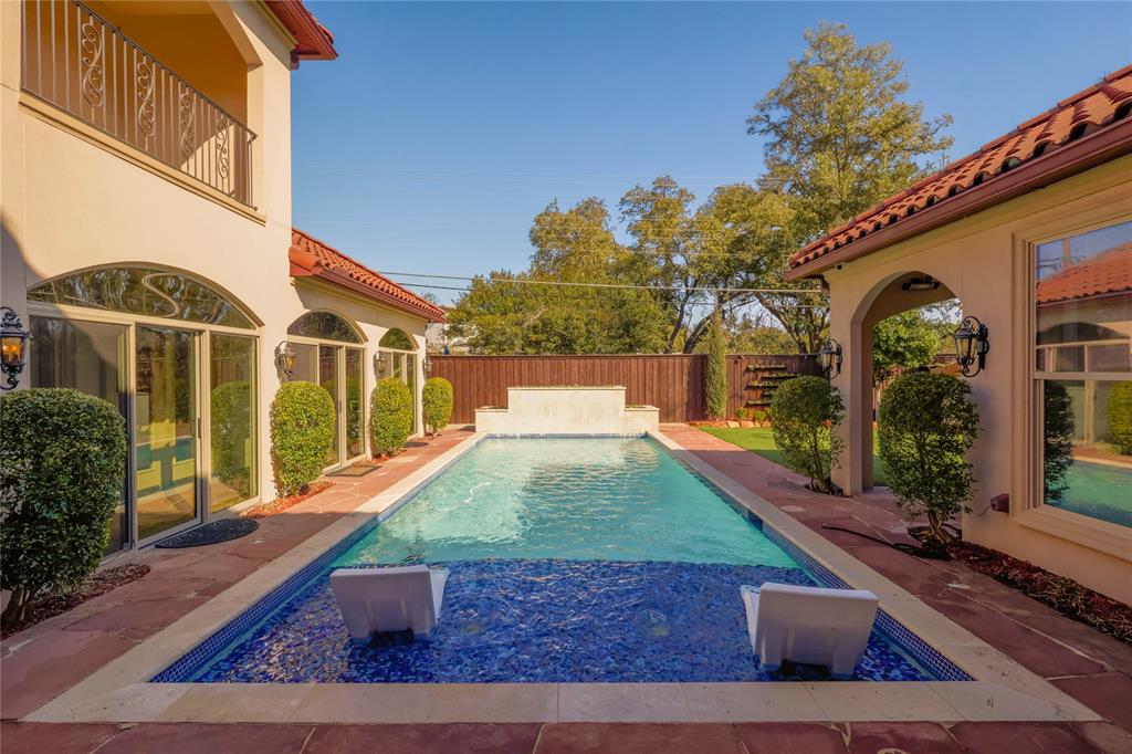 This elegant estate features 20-foot ceilings, marble floors, and a light-filled living room with a wall of windows offering views of the pool and lush backyard. The chef’s kitchen is outfitted with marble surfaces, SubZero and Wolf appliances, and extensive custom storage. The primary suite includes a fireplace, spa-style bath with jetted tub and steam shower, and a generous walk-in closet. A dedicated office with a backlit onyx wall adds a refined touch. Upstairs, enjoy a home theater and game room. The fully equipped outdoor kitchen features stainless steel built-in grills, a large sink with an industrial-style faucet, granite countertops, and ample cabinet storage throughout. A central granite-topped island on casters provides flexible prep and serving space. The kitchen also includes a full-size refrigerator and a full bathroom for added convenience. Multi-panel sliding glass doors open directly to the pool area, creating an effortless flow for entertaining.Outdoors, relax by the pool, koi pond, and manicured turf, with a custom-designed dog house offering luxury for pets. A gated driveway, three-car garage, and circular driveway complete the property. Located just minutes from shopping centers like NorthPark Center, top-rated restaurants, and scenic biking trails, this home offers both luxury living and unbeatable convenience! Summer special seller is offering $20,000 toward closing costs, or rate buy-downs. Don’t miss this opportunity!
