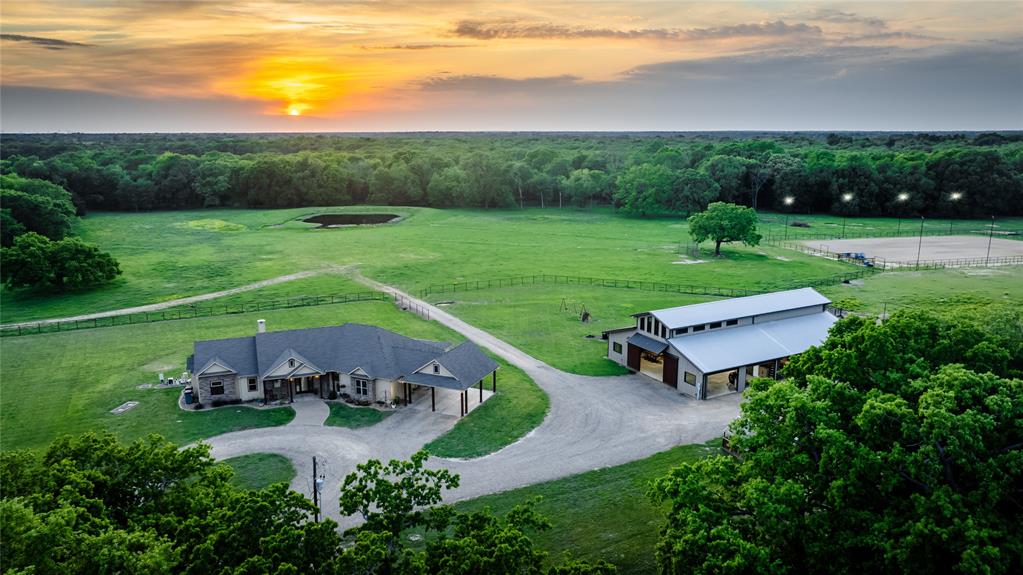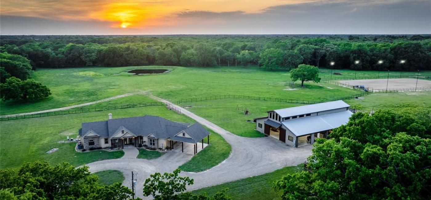 Welcome to this exceptional ranch retreat set on approximately 116 acres in Sulphur Springs, Texas—where modern comfort meets refined country living. Built in 2014, the main home combines thoughtful craftsmanship with high-end finishes throughout, including Kohler fixtures, foam insulation, and 2x6 exterior wall framing for energy efficiency. Step inside to soaring ceilings, abundant natural light, and timeless design elements like a stone fireplace, rich wood accents, recessed lighting, and ceiling fans. The chef’s kitchen is a standout with a premium Wolf range, double ovens, tankless water heaters, large islands, and a seamless flow for entertaining. Bedrooms are cozy with plush carpeting, while the rest of the home blends tile and wood for easy maintenance. Out back, unwind on the covered patio or in the heated in-ground pool and spa, added in 2015 with a new heater in 2020. The buried 500-gallon propane tank supports the home and ties into your daily ease of living. The barn, built in 2016, offers over 7,000 square feet of functionality and flexibility, including a 60x40 enclosed area with insulated doors, a tack room, half bath, six stalls, its own aerobic system, and tankless hot water. The upstairs space runs 20x90 and provides ample storage or expansion potential. A second 500-gallon propane tank powers a Generac generator installed in 2022, capable of sustaining both the house and barn. The lighted 150x260 roping arena and additional paddocks make this a dream setup for equestrians or ranchers. This property offers privacy, versatility, and unmatched Texas charm.