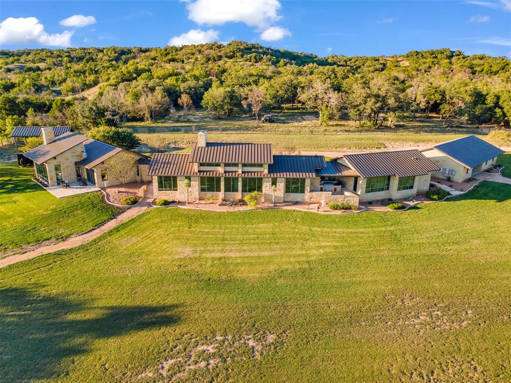 357 Ranch has been transformed to exceed the expectations of the most discerning recreational ranch owner. Starting in the Germany Creek Valley, a series of roads and crossings connect the ranch's multiple homes, pools, stocked ponds, and wet weather streams fed by rugged hills to the north. The ranch is anchored by an exquisite 4,782 sq ft main home and complemented by an equally impressive lodge,19th-century cabin, and shop complete with 2 apartments and a meeting room. For the more adventurous, there is a shooting range, motocross track, three 50amp RV parking spaces and pavilion with a full bathroom, outdoor kitchen, and firepit, and cleared hiking trails that lead to lookouts with views for miles. 357 Ranch is 25 minutes from Stephenville, 1 hour and 20 minutes to Dallas-Fort Worth, and Stephenville Clark Regional Airport with a 75 x 4,200 ft runway is just 20 minutes from the ranch entrance.