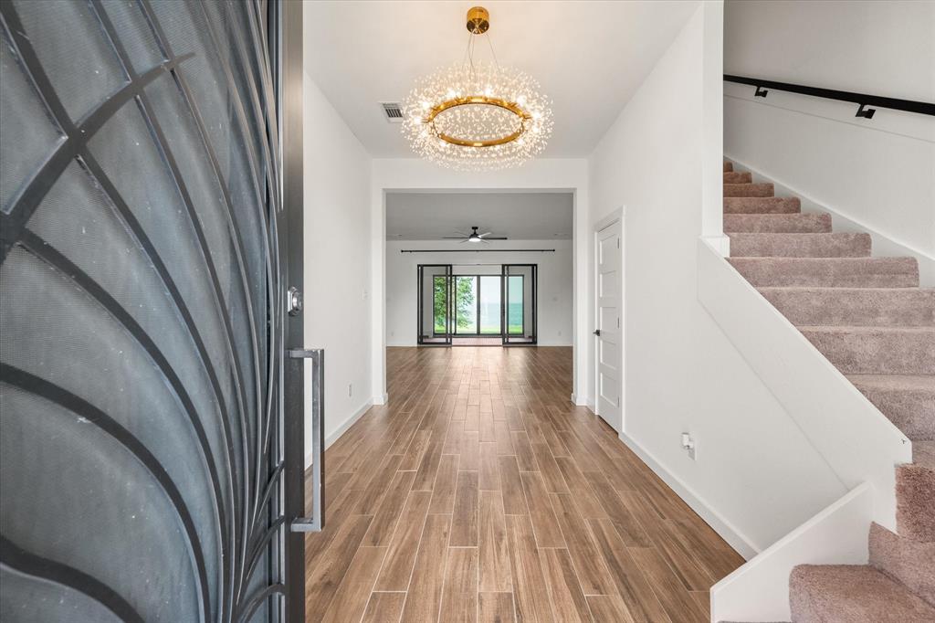 This stunning modern farmhouse is situated on a spacious waterfront lot within a gated community at Richland Chambers Reservoir. Energy efficient features include a tankless water heater, metal roofing and foam insulation. This 4 bedroom, 3.5 bathroom lake house is ideal for a primary or secondary home. For accessibility and convenience the primary bedroom, office, gourmet kitchen, spacious living room, dining room and an enclosed porch (four season room) with open views of the lake are all located on the ground floor. Primary bathroom is plumbed for bath tub. Upstairs you will find three bedrooms, two full baths, a family room with a wet bar and an additional four season room. The 600 sq ft space above the garage is equipped with a mini-split unit and may be used as an office, workroom, guest quarters, etc. It includes a half bath which is already plumbed and easily converted to a full bath, if desired. The open area has built-in cabinets, sink and counter top. Additional amenities include prep work for a boathouse, steel retaining wall along the shoreline, private walkway next to retaining wall, buried 1,000-gallon LNG tank and back-up generator. The back of the home faces West allowing for beautiful sunset views from the backyard, patio and four season rooms overlooking the open water.