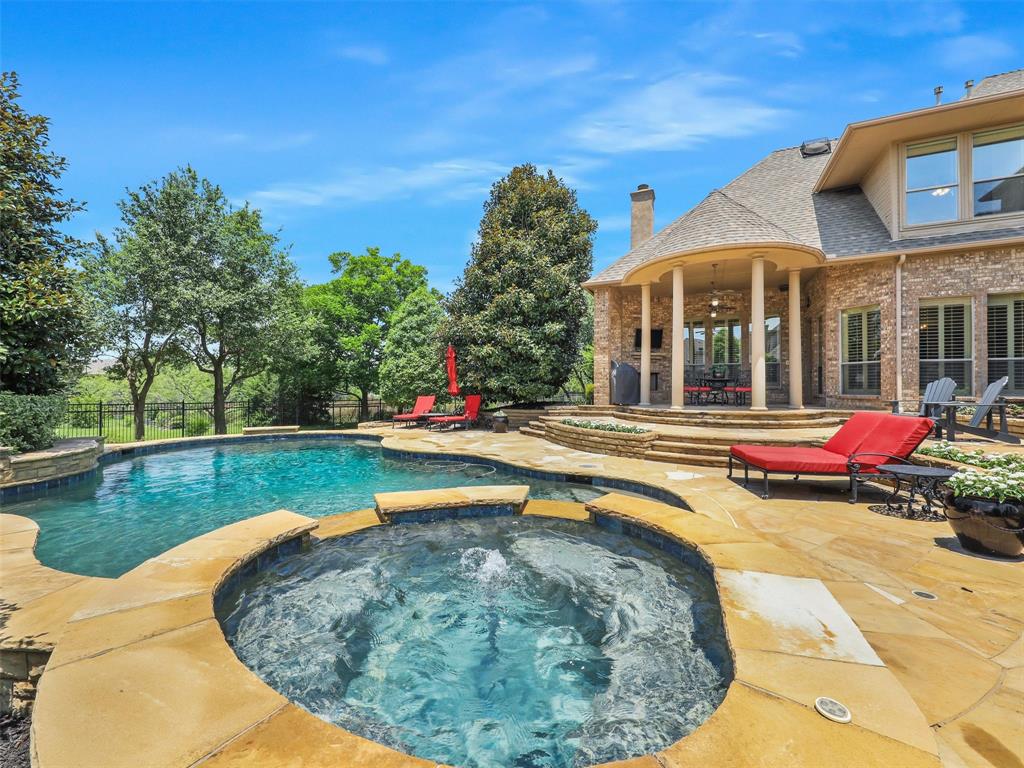 Welcome home to this charming custom home nestled on a private lot in Southlake's coveted neighborhood, Estes Park. Step through the grand iron doors to soaring ceilings in the Formal Living rm w dramatic staircase & expansive windows offering picturesque views of backyard, gracious Dining Rm + Executive Study. The Chef's Kitchen is fully equipped w prof-grade Thermador appliances, spacious island, large Walk-In Pantry, temp controlled Wine Room + Butler's pantry. Retreat to the private Primary Bedroom boasting a sitting area & luxury spa bath. Guest Suite also down. Upstairs has 3 generous Bedrooms + spacious Game Room w full Wet Bar + Media - Bonus room for use as a home theater or quiet retreat. Step outside to this beautiful property to find an entertainer's paradise with a sparkling pool, relaxing spa, and large covered patio with built-in grill. The lush and meticulously maintained landscape provides a perfect backdrop for outdoor gatherings. Front faces wooded walking trail.