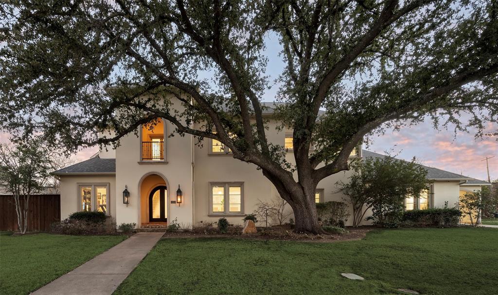 Welcome to 6504 Joyce Way, a Mediterranean-inspired home nestled in the highly sought-after Preston Hollow, set on a meticulously landscaped corner lot. This light-filled open floor plan offers the ideal spaces for seamless indoor and outdoor living and entertaining. The main floor boasts a well-appointed office with custom built-ins, an elegant formal dining room with a butler’s pantry, and a spacious open-concept den with a fireplace, all overlooking the backyard. The gourmet kitchen is a chef's dream, featuring quartz countertops, double ovens, dual dishwashers, and a charming breakfast nook. The oversized primary bedroom, with French doors leading to the backyard, includes a luxurious bath with double vanities, a soaking tub, a separate shower, and an expansive walk-in closet. Additional highlights on the first floor include a guest bedroom, wine storage, and a utility room. Upstairs, enjoy a game room, a front balcony, and three en-suite bedrooms with generous closet space. The backyard is truly an oasis, offering a cozy fireplace, turfed yard, and a heated pool and spa. Ideally located near prestigious private schools and shopping and dining at Preston Center and Preston Royal shopping centers, this combines convenience and luxury in a premier setting.