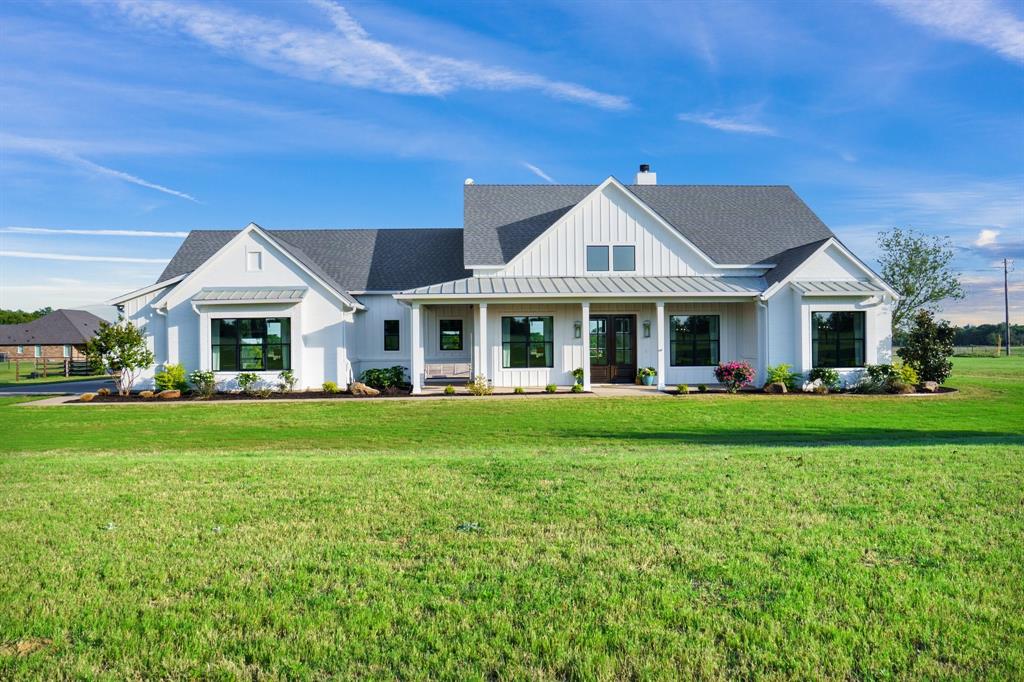 A Perfect Blend of Luxury & Country Charm! Welcome to this stunning modern farmhouse, nestled on 4 scenic acres and designed for elegance and comfort. This 4-bedroom, 3-bath retreat offers a peaceful lifestyle with all the modern conveniences you desire. Step onto the inviting front porch, the perfect spot to sip your morning coffee while soaking in the serene country views. Inside, the open concept living space is bathed in natural light, complemented by high-end finishes and thoughtful design. The gourmet kitchen features a Calcutta marble backsplash and leather granite countertops. It also includes an oversized island with custom cabinetry, ideal for hosting gatherings. Downstairs features stained, scored concrete floors. Enjoy the dedicated piano room, where music and relaxation intertwine, or get productive in your private office space. The primary suite is a true sanctuary, complete with a spa-like ensuite and a safe room. The laundry room is huge with an indoor dog shower. Outside, the fun continues! Lounge by the sparkling play pool and hot tub or take advantage of the horse barn, perfect for equestrian lovers with additional storage, complete with a loft and chicken coop. Whether entertaining guests or embracing peaceful country living, this home has it all. Acton Elementary's high ranking earned it eligibility to display a U.S. News Best Elementary Schools award badge.
