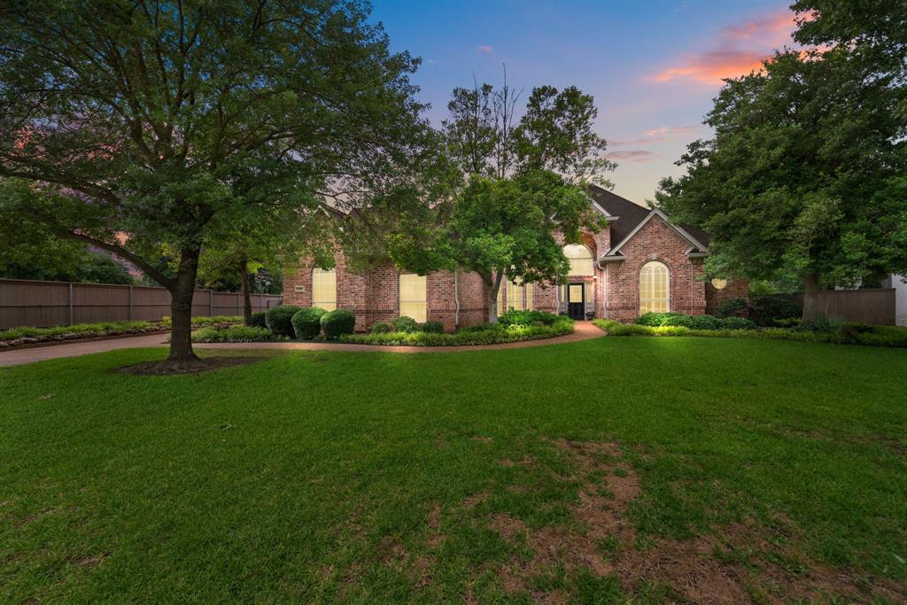 Welcome to a Timarron classic with beautiful curb appeal, highlighted by its lush landscaping and charming architectural details. This impeccably maintained 4-bedroom, 3-bathroom home with a 3-car garage showcases luxury and quality craftsmanship at every turn. Upon entering, you are greeted by exquisite detailed millwork and elegant hardwood floors. The home's spacious layout features custom built-ins and granite counters, complemented by plantation shutters and a trey ceiling, adding to its refined atmosphere. Designed for privacy, all four bedrooms are conveniently located on the main floor, with a thoughtful split-bedroom arrangement. Adjacent to the oversized formal living area, adorned with floor-to-ceiling windows, you'll find a private home office and formal dining room, perfect for entertaining guests. The chef's kitchen is a culinary enthusiast's dream, equipped with stainless steel appliances, a 4-burner gas cooktop, double ovens, a microwave, a breakfast bar, and a walk-in pantry. This space flows seamlessly into the inviting family room, where a gas fireplace and breakfast area create a warm and welcoming ambiance. The primary ensuite is a true retreat, featuring a sitting area, jetted tub, glass-enclosed shower, double vanities, and a generous walk-in closet with custom cabinetry. The first floor also includes a well-appointed utility room with built-in wine coolers, a sink, and ample cabinets for storage. Upstairs, discover a Texas-sized game room, offering a versatile space for recreation and relaxation. The backyard is a serene oasis, boasting a covered stone patio, mature trees, & the privacy of backing onto a greenbelt. Enjoy the unparalleled community amenities, incl miles of walking & biking trails, a tranquil lake, tennis, volleyball, & pickle ball courts, playgrounds, & pools. Just minutes away from upscale shopping, dining, & entertainment options at Southlake Town Square, this home presents an opportunity to embrace a sought-after lifestyle.