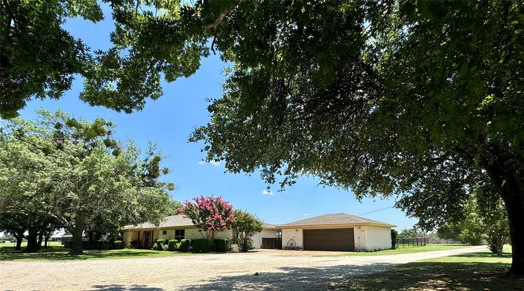 This stunning equestrian paradise boasts top-notch amenities, including a massive 275' x 140' roping arena, quality pipe fencing, and four coastal pastures with loafing sheds. Beautifully updated home features 3 bedrooms, 3 bathrooms, and 2 master suites, open floor plan, enclosed sunroom, and fenced backyard for furry friends. The gourmet kitchen shines with granite counters, double ovens, and gas appliances, a separate formal dining area can double as a home office. Recent upgrades include a new roof (2022) and two new HVAC units (2023). The horse setup includes a roping arena, Priefert chute, holding pen, eight separate paddocks with auto waterers, a tack room, covered wash rack, shop, and two RV hookups. One-bedroom, one-bath barn apartment with laundry offers the perfect ranch hand accommodation. Mature trees, extra storage, and a fantastic location just minutes from elementary school. Easy commute to Stephenville (13min), Weatherford (37min), Fort Worth (1hr) or DFW (1hr 17 min)