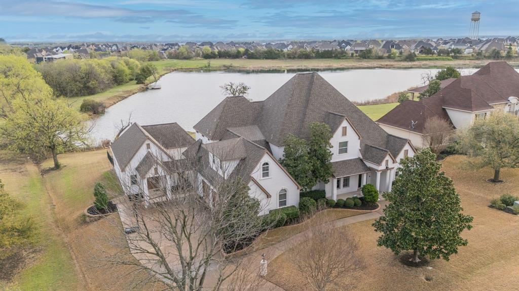 Rare opportunity on the water in highly sought after Lovejoy ISD, a nationally recognized school district. Enjoy this backyard oasis with arbor, firepit and pool all overlooking the serene lake. Step inside the stunning foyer and you are drawn instantly to the wall of windows letting you view the backyard from the open floor plan living area and kitchen. Split floor plan, large primary suite offers additional backyard views with a newly renovated modern bathroom. Two large, primary closets and significant storage available throughout the house. Additional ground-floor bedroom with ensuite bath. Large media or game room upstairs with wet bar. Accessory unit or casita attached to home by breezeway has a full bath and currently used as a gym and game room, but would be perfect for a mother-in-law suite. A .68 acre lot located in the guard gated wonderful community of Seis Lagos which has tennis and pickleball courts, basketball court, playground and fishing on the lake.
