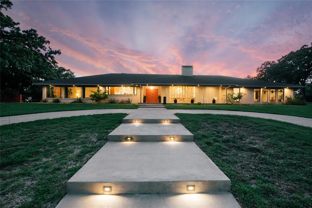 Meticulously and thoughtfully designed to perfection, this mid-century modern home is not to be missed. Situated on over 2 beautiful acres, this home is the perfect combination of stunning architectural design and modern luxury. Clean lines, vaulted ceilings, and floor-to-ceiling windows pay homage to its mid-century roots, while premium finishes and modern upgrades provide the best of contemporary living. Having undergone a complete gut renovation in 2020, including all new electrical, ducting, HVAC, hot water heaters, windows, and raised ceilings, this home is perfect for you to enjoy for years to come. Located in one of the best, established neighborhoods in Denton, minutes from I35, providing access to all of DFW, this expansive home features 3 bedrooms, 5 bathrooms, 2 living areas, a media room, game room, office, garden room and 2 dining rooms, offering a versatile and spacious layout. Every detail of this home has been meticulously curated including the beautiful tile selections with designer fixtures in the gourmet kitchen and bathrooms, top-of-the-line appliances, including a Dacor built-in refrigerator, Miele coffee maker and Thermador oven and range. The impressive features and luxury living continue with a gorgeous mid-century style wood stove and an oversized wood burning fireplace with a gas starter. Combined with a seamless connection between indoors and outdoors that floods the house with natural light through a wall of windows and sliding doors leading to a wonderful outdoor kitchen and oversized pool, this home is perfect for both comfortable luxury living and entertaining your family and friends.