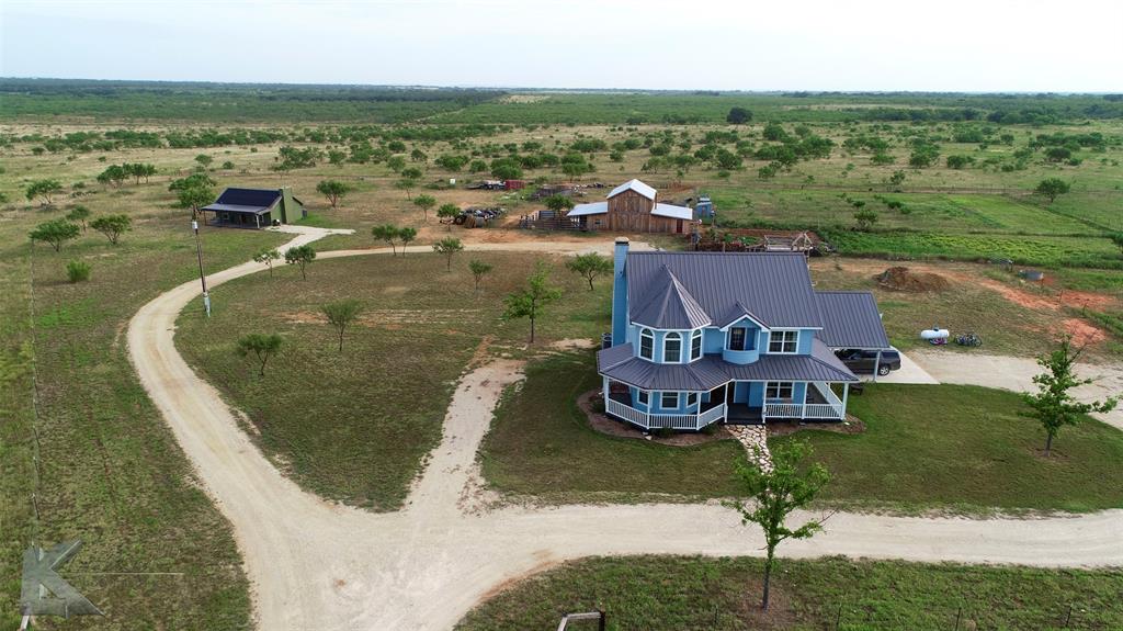 Your chance to own a piece of Texas! 45 acres just 30 minutes from Abilene with a spacious 3, 000 sq. ft. main home. This 4-bedroom, 2.5-bath home also has a bonus room that could be a 5th bedroom. Step inside to hardwood floors and a gorgeous staircase. The open living and kitchen area features built-ins and a rock fireplace. The kitchen has Acacia wood countertops, an island, stainless steel appliances, and more. There is also a separate dining area. The primary suite has a huge walk-in shower, a separate tub, a hidden shelf, and more. A gun safe in the hall closet will stay with the home. Also included is a 1-bed, 1-bath guest house that brings in passive income on Airbnb. There is a spacious barn with an office, a rain catchment system off the guest house and barn, and fiber internet to both homes. Plus, a small apple and peach orchard! With 45 acres, there is plenty of room for livestock, recreation, and more. Additional acreage may be available. Don't miss this stunning property!