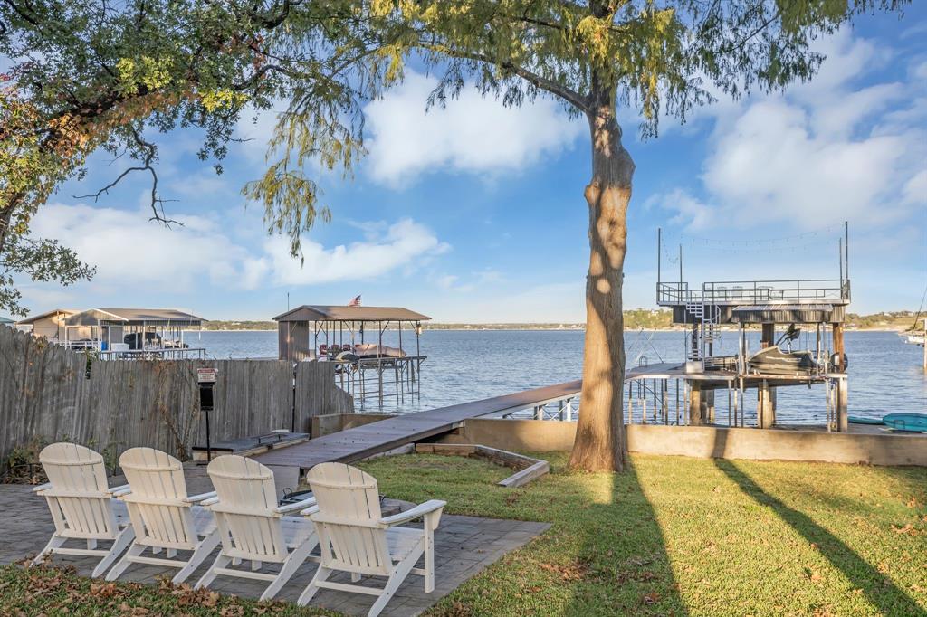 For those who care about getting as close to perfection as possible, this lakefront mini resort on Eagle Mountain Lake is a once-in-a-lifetime opportunity to bring family and friends together for the kind of memories that most folks can only wish for. The property faces the sunrise over the lake every morning, heralding a new day of fun and adventure. Majestic trees provide a canopy of summer shade high above without spoiling the views. From the moment you pull up to the front gate, the lake provides a stunning backdrop for the entire compound. The gently sloping lot leads from lawn and trees to pool and patios, to the best pool house on the lake, to the home to the gazebo, lawn overlooking the water, and amazing dock and boat house. No need for a difficult tram here. Just a pleasant stroll out onto the water. Sitting on a quiet, private tree-shaded street at the deep-water end of Eagle Mountain Lake, the property has the advantage of being outside of city limits, and so has very few restrictions as to what you can do with it. The amazing pool house has been used as an exclusive Air b-n-b with dozens of 5-star ratings, sleeps 8-10, includes a fully functional kitchenette and tornado safe room, big loft, and wonderful views. Room for RV and extensive guest parking. The upgraded dock and boathouse has lifts for 2 boats and 2 watercraft, all TREX decking, and rooftop deck for the best views. The pool is truly one-of-a-kind and is a major hit with guests, including 15 foot waterfall with diving and jumping spots, lighting, tube slide and spa. There is even plenty of room to build an epic dream home on the water, without infringing on the existing home and pool house. Both homes have been extensively upgraded and fully remodeled, with extras like modern welded steel exterior stairways and commercial-grade standing seam steel roof. There are some very unique elements of this that I am not comfortable sharing publicly. Call me for more details. More photos available.