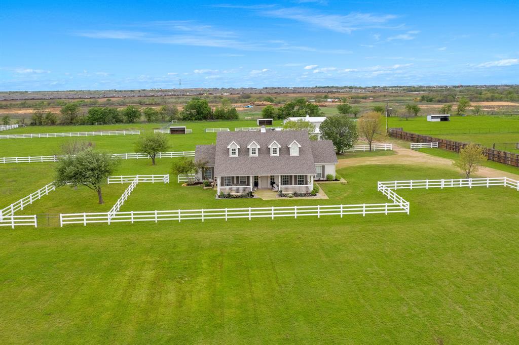 This 4.24 acre Equestrian's dream is one you will not want to miss! it offers a 5 stall lighted barn, tack room, wash rack, oversized building for equipment, 2 loafing sheds, and 3 beautiful cross fenced pastures. Enjoy beautiful sunrises and sunsets while relaxing on the long covered porch areas of this estate home that has been redesigned by Kelly Amis Designs of Dallas, designed to capture the heart of Buyers who want a floorplan that offers flexibility with a 4-way split bedroom arrangement with 2 up, 2 down with en-suite baths including downstairs bedroom offering a private area entry, ideal for guests or multigenerational living. The incredible kitchen is an absolute chef's delight with upscale commercial grade appliances that include (2) full size separate refrigeration units (freezer and refrigerator), 6 burner gas range, under counter drawer microwave, wine refrigerator, ice maker, coffee bar and skilled craftsman cabinetry offering an enormous amount of storage and lighted displays as well as a spacious dining area and countertop service area making it IDEAL for entertaining. The property has a newly installed sealed driveway area, 3 car garage, and offers an Ag exemption. This is a must see property to experience the serene and peaceful setting with views of the Argyle hills.