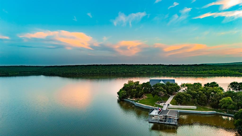 Tucked away on a private peninsula point overlooking the tranquil west side of Possum Kingdom Lake, this hidden gem offers the ultimate lakefront lifestyle. Set on 1.5 secluded, park-like acres, this property is a rare blend of natural beauty & modern comfort. Thoughtfully landscaped with multiple tree-shaded seating areas, terraced grounds, & meandering walkways, the property is an outdoor oasis designed for relaxation & enjoyment. A natural lookout point provides breathtaking lake views, while sidewalks offer easy access to key areas, including your private dock. Situated in a protected cove, the double-deck dock features 2 boat slips, 2 PWC slips, & 2 entertainment areas - Perfect for sunny days with family & friends, the dock offers safe harbor from wind & waves. The 2022 custom built lake home exudes comfort & sophistication. The moment you enter through oversized doors, you’re welcomed by soaring ceilings, walls of windows, an open-concept great room with expansive lake views, beautiful chandeliers, & a centrally set wood burning stove. Additional Highlights: Light, airy design with custom finishes throughout; Chef’s kitchen with stainless steel appliances, including: Double refrigerator, Double oven, Ice maker, Dishwasher & microwave, Exceptional cabinetry & pantry space, Mudroom entry with utility room & half bath – ideal for lake days. Main level primary suite with spa-like bath, soaking tub, walk-in shower, & his & hers closets, Main floor guest room & full hall bath, Bonus oversized storage closet (perfect for holiday décor or gear) Upstairs Features: Spacious loft overlooking the great room, 2 additional bedrooms with lake views, Full bath, 548 sf of unfinished attic space ~ ideal for future expansion or flexible use. Extra Perks: All bedrooms feature lake views, as does the master bath; Designed for effortless entertaining or serene escapes ~ Whether you're hosting a crowd or enjoying a peaceful weekend for two, this is lake living at its finest!