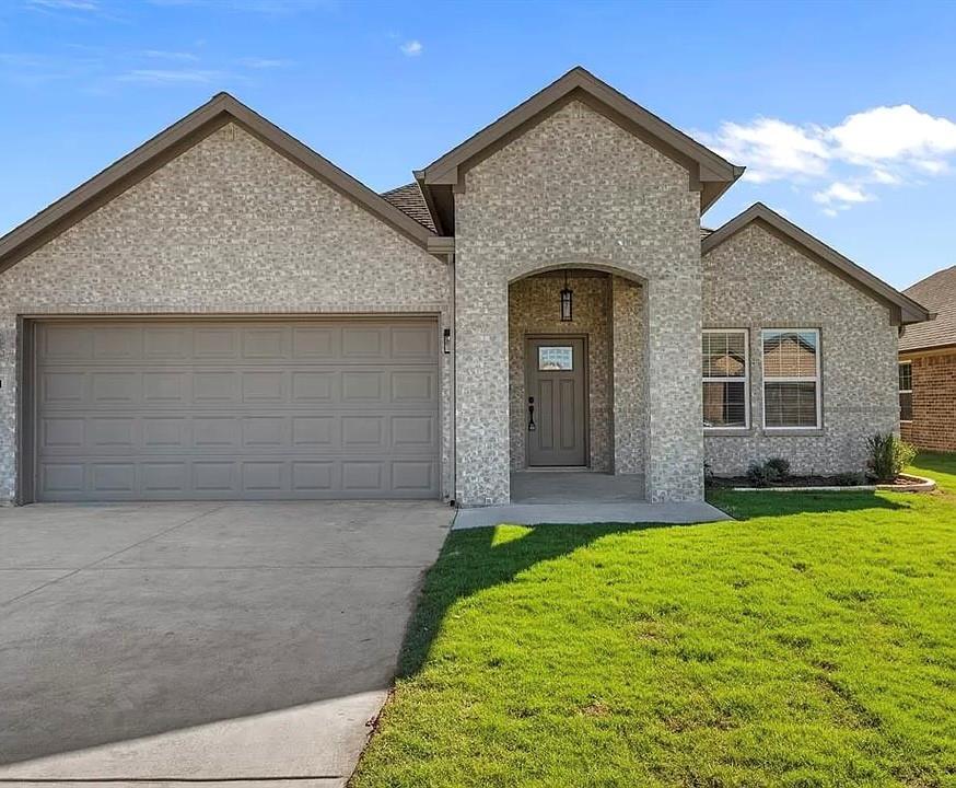 This newer home is ready for move in! Open concept kitchen and living area, with 3 bedrooms, 2 baths, and a 2 car garage. The gorgeous and spacious kitchen features granite counter tops with island for extra seating, eating area and a laundry room. Higher ceilings and crown molding provide an added touch. Outside features include a covered back patio with fan, sprinkler system and privacy fence. Neighborhood is 5 minutes from L3-Harris, I-30, Local Restaurants and Shopping.