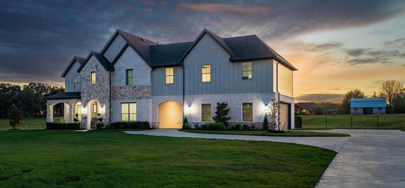 Welcome Home to Dyer Estates! This 5 bed, 4.5 bath estate on 2.4 acres offers the perfect blend of elegance and charm, all with no HOA restrictions! Spacious living areas, tall ceilings, oversized windows, and a cozy fireplace round out the main floor. The chef's kitchen is a culinary delight, featuring stainless steel appliances and custom cabinetry. A luxurious primary suite is a true sanctuary, boasting a spa-like bath with a soaking tub, dual vanities, and a separate shower. Additional highlights include beautiful hardwood floors, a dedicated home office, and a versatile bonus space perfect for fight night, game night, or overnight guests. Enjoy endless summer days by the pool, surrounded by expansive patio areas ideal for entertaining. This property features a sizeable barn, perfect for horses, events, or recreational vehicle and toy storage. Animals welcome! Zoned to Argyle School District, this peaceful blend of rural living and urban proximity is a must-see!