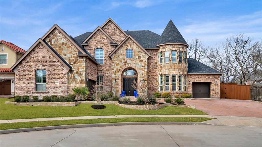 Fabulous, custom-designed Toll Brothers home on a wooded cul-de-sac, within the gated Latera community. This impeccable home offers a spacious layout with high-end finishes and a huge, fenced yard for all of your heart's desires! Thoughtful floor plan provides ample space for generous living and entertaining. The open floor plan is enhanced by natural light and wood floors, two staircases and numerous high-end upgrades. Grand entry with stately double doors and curved staircase. A large private study off the foyer features a beautiful bay of windows and high ceilings. The thoughtful floor plan features a formal dining room perfect for entertaining at the center of the home. The two-story great room boasts a corner fireplace, soaring ceilings and stacked windows and is conveniently open to the gourmet kitchen, equipped with stainless steel appliances, built-in refrigerator, large breakfast bar island and walk-in pantry. The Primary Suite downstairs features a sitting area, wonderful natural light and a luxurious master bath with a walk-in shower, dual sinks, garden tub and impressive walk-in closet. An additional downstairs bedroom features an ensuite bath and enhanced privacy in a separate wing of the home. Upstairs, the home offers a spacious game room with high ceilings, a great media room with wet bar and three additional, sizable bedrooms, each with its own full bath. The huge, pool-sized backyard is perfect for entertaining and a full bath downstairs is ideal for future pool plans. Situated on a 0.37-acre lot, the property includes a swing drive with single and two-car garages. Residents of the Latera community are close to DNT, 380 and Preston Road...exciting nearby developments include The Star, Toyota Stadium, PGA headquarters, and future Firefly Park. The gated community is ideally situated mere minutes from both Frisco and Prosper retail, dining, sports fields and entertainment!